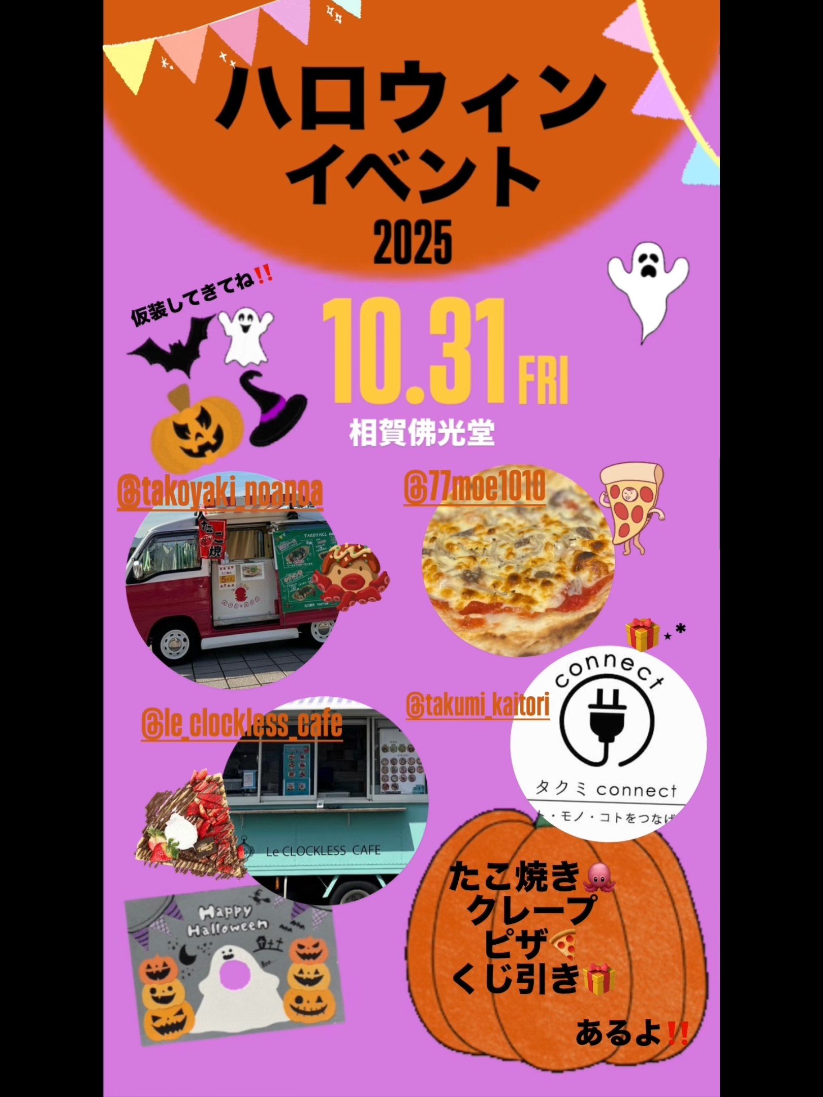 folder イベント おしらせ グルメ クレープ たこ焼き つねやまの人々 ハロウィン ピザ モンスター 伝統風習 地元 季節 行事